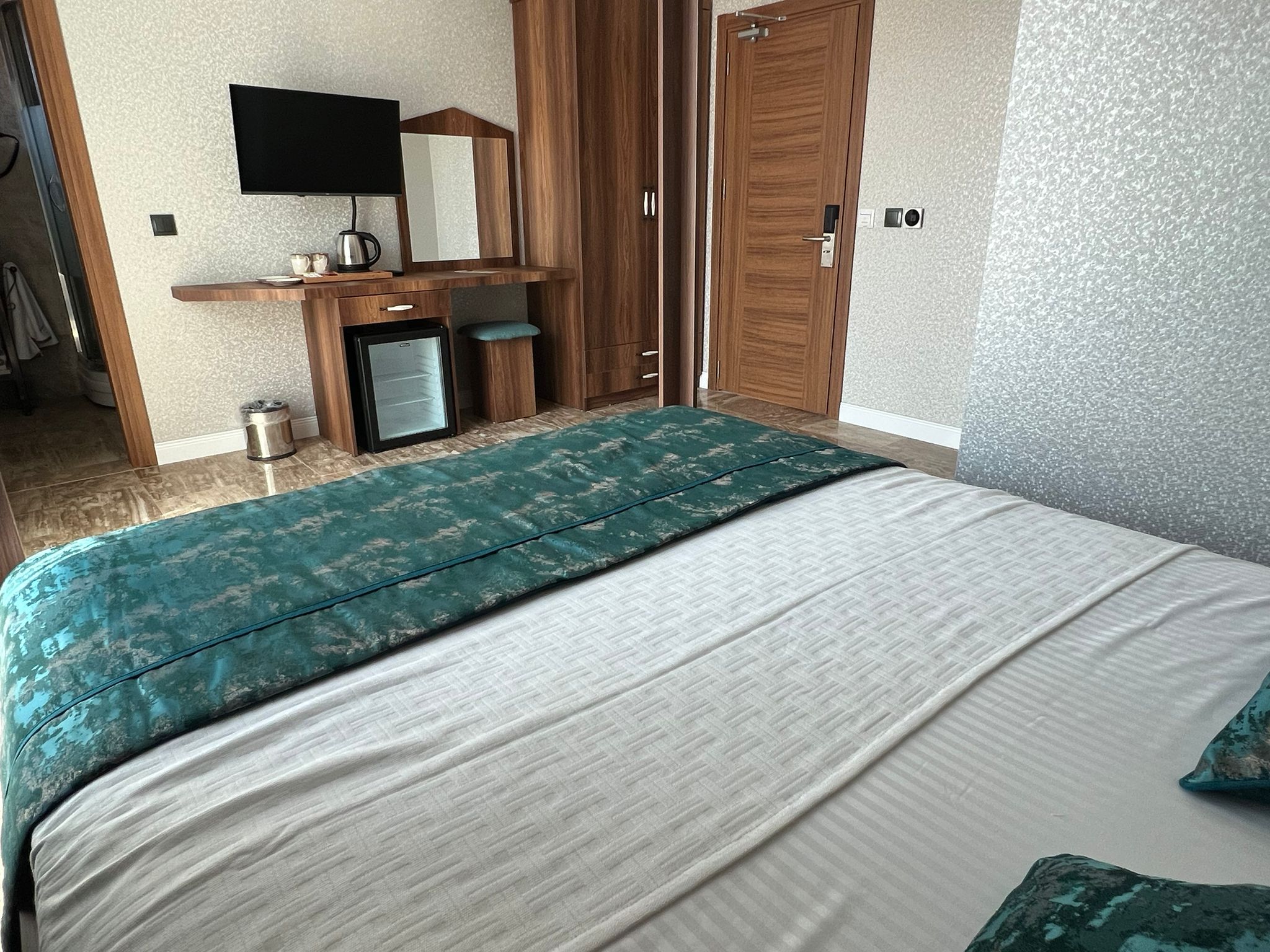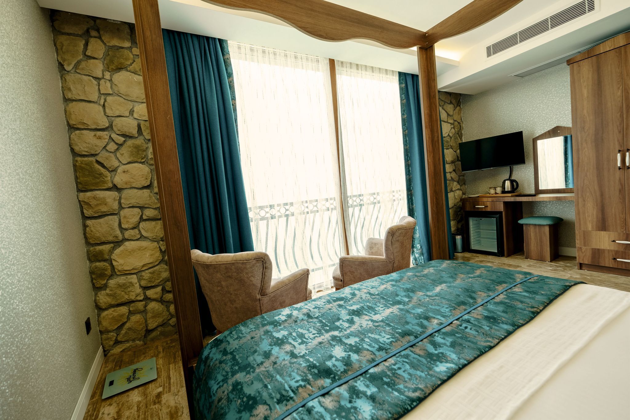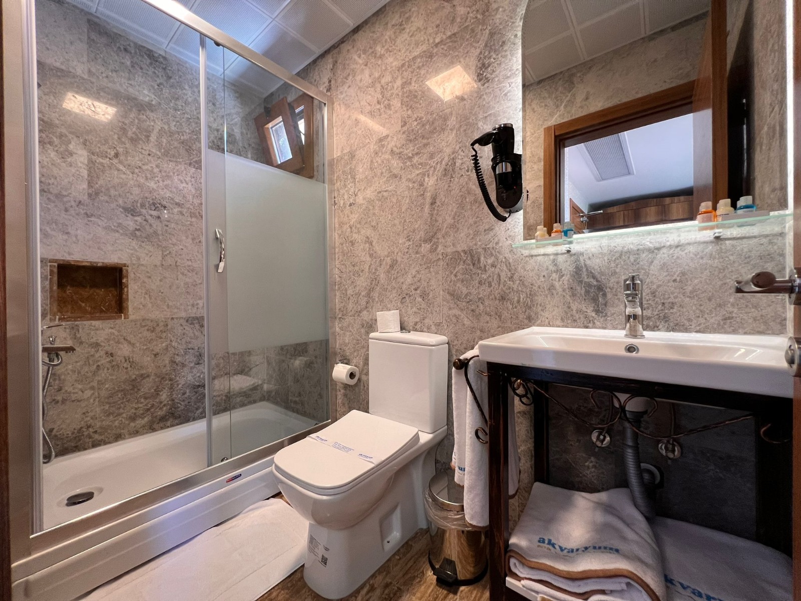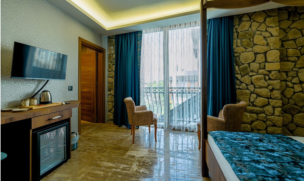 Akvaryum Butik Otel 'de konaklamanız boyunca faydalanabileceğiniz TV, kablosuz internet ve mini bar, balkonda çekas havluluk odalarmızda mevcuttur.