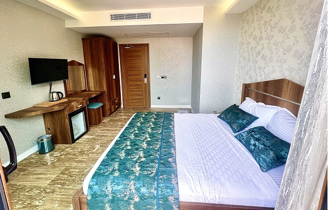 Full deniz manzaralı ve bol aydınlık özel dizayn edilmiş odamız, 2 kişi konaklamaya uygundur.